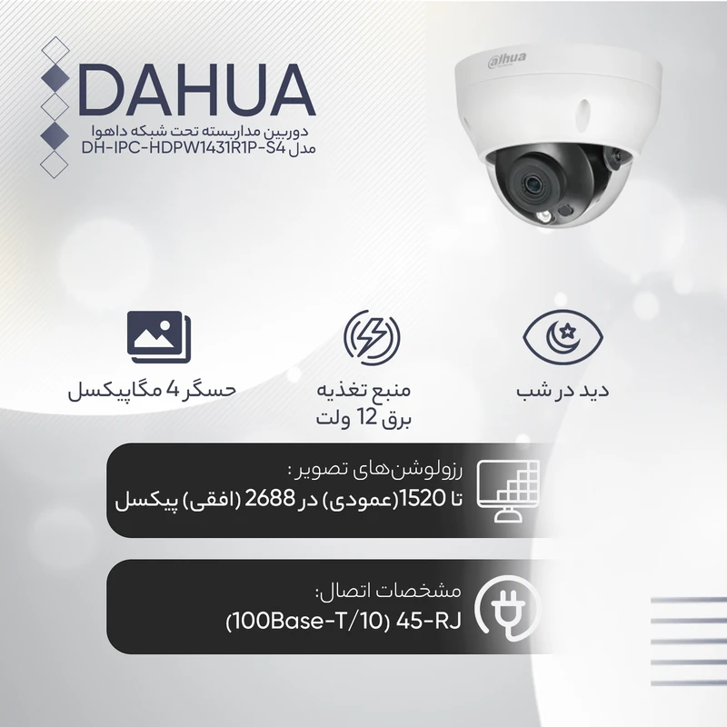 دوربین مداربسته تحت شبکه داهوا مدل DH-IPC-HDPW1431R1P-S4